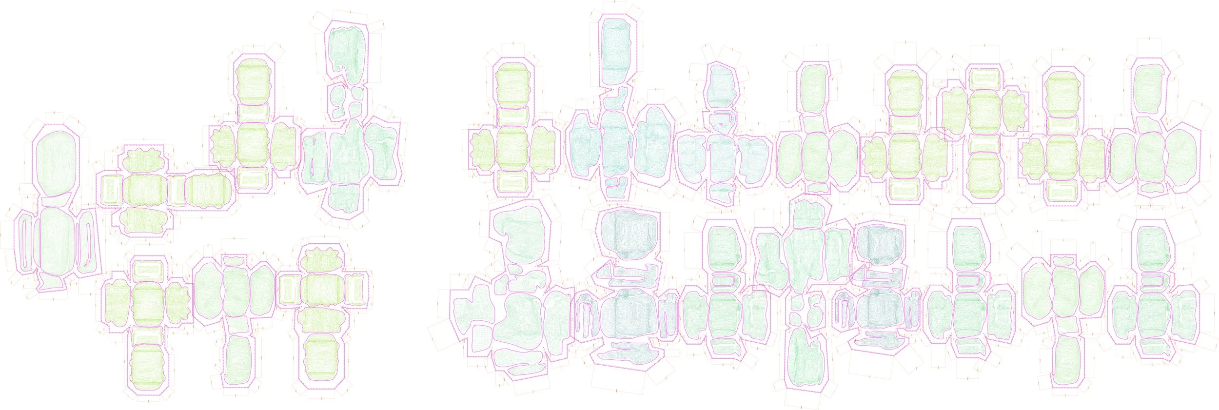 Material experimentations are made by reconfiguring viscera to condition the space. Animal innards specifically pigs and cows properties are being explored (pneumatic, strength, elasticity, transparency)in order to understand how they can be used in a building system.